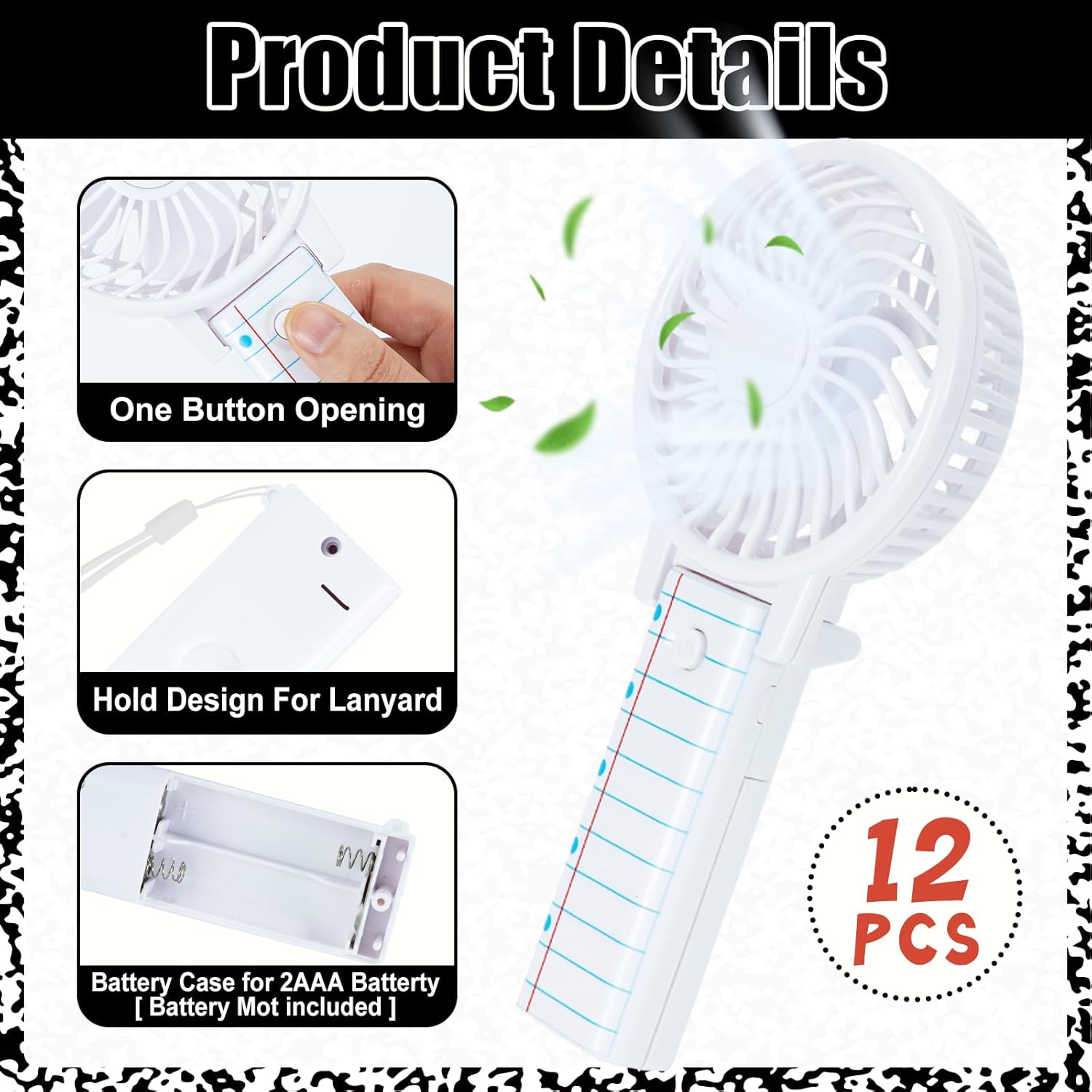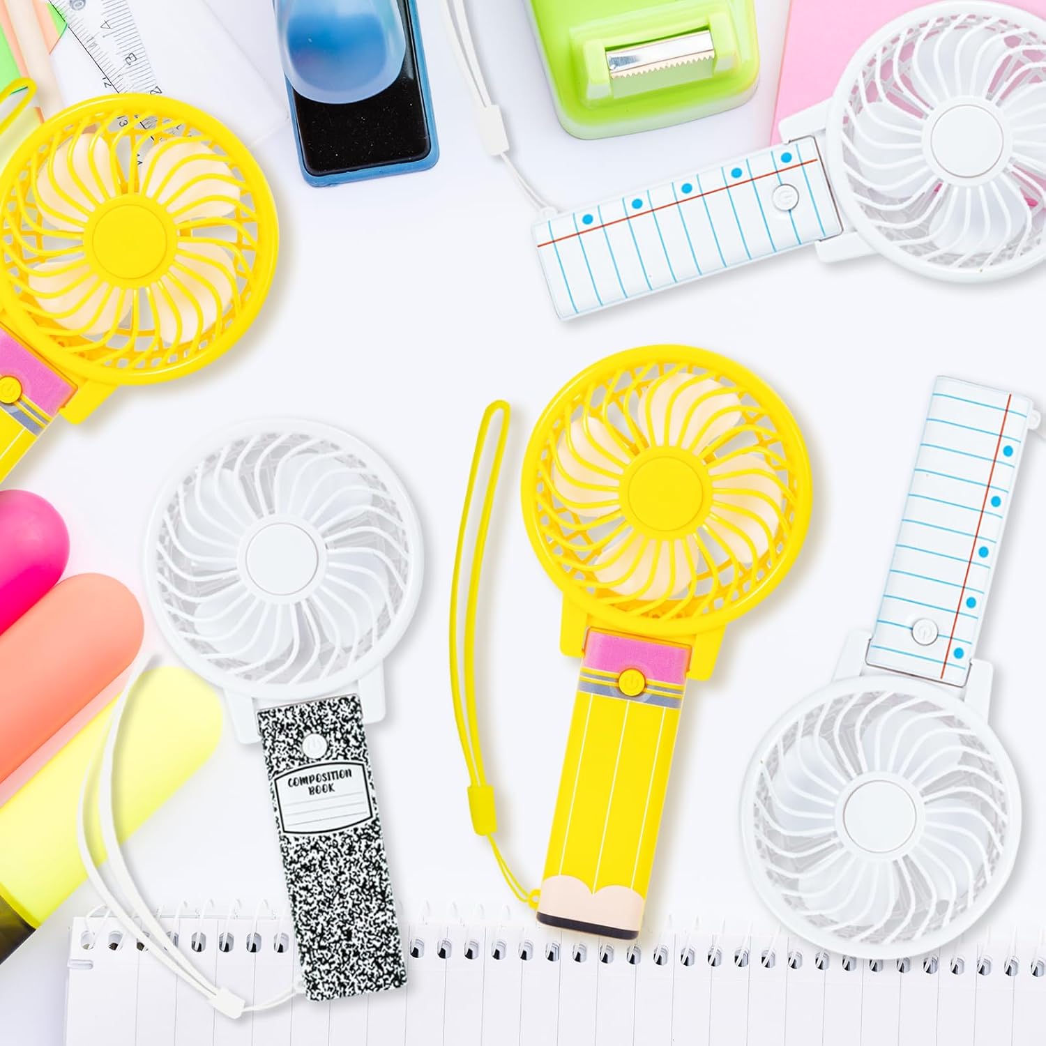 Specification:It’s a new semester, a new atmosphere, and I would like to send my warmest wishes to teachers and classmates for the beginning of the school year. This back-to-school-themed portable fan set contains 24 fans, covering 3 unique designs of pencils, composition books, and homework books, with 8 fans each. The appearance adopts classic campus elements, with bright colors and exquisite patterns, giving it a full back-to-school atmosphere.Color: As shown in the pictureQuantity: 24 PCsFeatures:-1. The fan has a total length of about 5.9 inches and a fan diameter of about 2.6 inches. It is small and portable and can be easily put into a pocket or handbag.-2. Classic campus elements, with bright colors, exquisite patterns and full atmosphere.-3. A thoughtful and practical gift for teachers, classmates and club members during the beginning of the school year.Packing Includes:24 × Back to School Small Personal Portable FansNotes:For manual measurement, please allow slight errors in size.The color may have a slight difference due to different screen displays.
